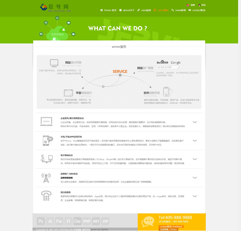 一、整套模板純手寫(xiě)div+css代碼,符合W3C標(biāo)準(zhǔn),完美兼容 IE6/7/8/9/10、Firefox、Chrome、Opera、Safari、360瀏覽器等主流瀏覽器,經(jīng)測(cè)試無(wú)錯(cuò)位,加載速度飛快。