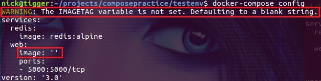 注意,如果對應(yīng)的環(huán)境變量沒有被設(shè)置,那么 compose 就會把它替換為一個空字符串: