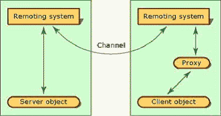 首先,客戶端通過Remoting,訪問通道以獲得服務端對象,再通過代理解析為客戶端對象。這就提供一種可能性,即以服務的方式來發布服務器對象。遠程對象代碼可以運行在服務器上(如服務器激活的對象和客戶端激活的對象),然后客戶端再通過Remoting連接服務器,獲得該服務對象并通過序列化在客戶端運行。