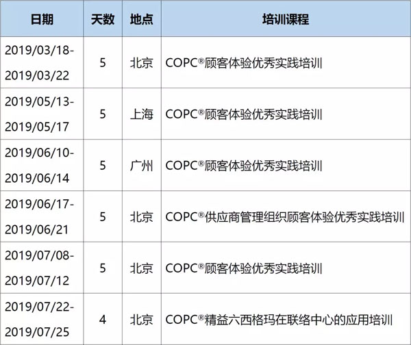 2019年COPC中國區公開課培訓計劃