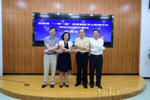 2017年7月6日,陜西省“一帶一路”語言服務及大數據平臺呼叫中心位于西安外國語大學的培訓基地正式啟用。陜西省人民政府外事辦公室主任姚紅娟、西安外國語大學校長王軍哲、中譯語通科技(北京)有限公司董事長黃松、西咸新區秦漢新城新絲路數字文化科技有限公司總經理潘劍平出席啟用儀式,同時,四方與會相關人士參加并見證。
