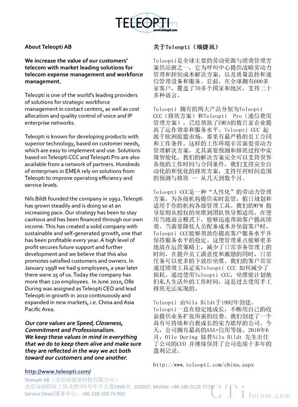 Teleopti是全球主要的方案供應商之一,它為呼叫中心提供戰(zhàn)略勞動力管理以及控制成本解決方案,以及質(zhì)量監(jiān)控和通信管理設備和服務。