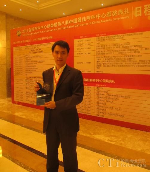 第一線華東區(qū)總經(jīng)理李洪鈞先生在國(guó)際呼叫中心峰會(huì)暨第八屆中國(guó)最佳呼叫中心頒獎(jiǎng)典禮上領(lǐng)取了2012年最佳呼叫中心(外包獎(jiǎng))